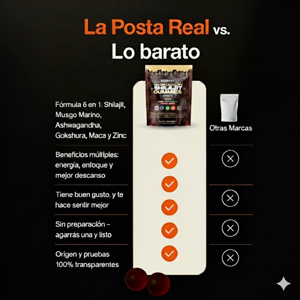 Recuperá tu energía y confianza en 2 semanas — Shilajit Gummies™ combina Shilajit del Himalaya, Ashwagandha KSM-66, Maca Negra, Gokshura y Zinc para potenciar tu testosterona, deseo y rendimiento natural. Probado en laboratorio, sin químicos ni azúcar.